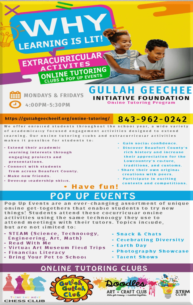 In helping to serve elementary school students in maintaining academic progress outside the normal classroom environment, GGIF is providing an online personal tutoring program to K-5 students living in Beaufort County.